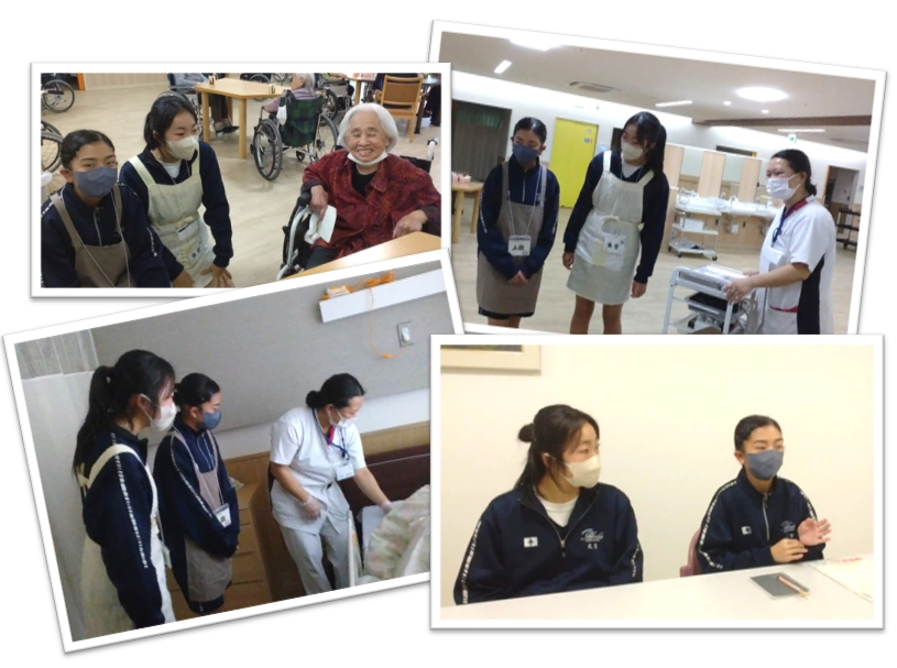 介護職と一緒にお風呂介助の様子や、オムツ交換の様子を見学、看護師と一緒に検温などの様子を見学し、直接ご利用者様と交流しました。