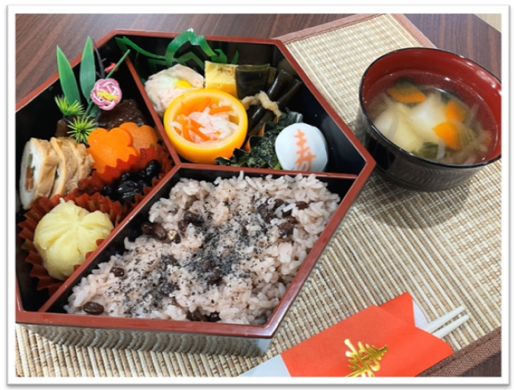 お昼はおせち料理を提供させていただきました。